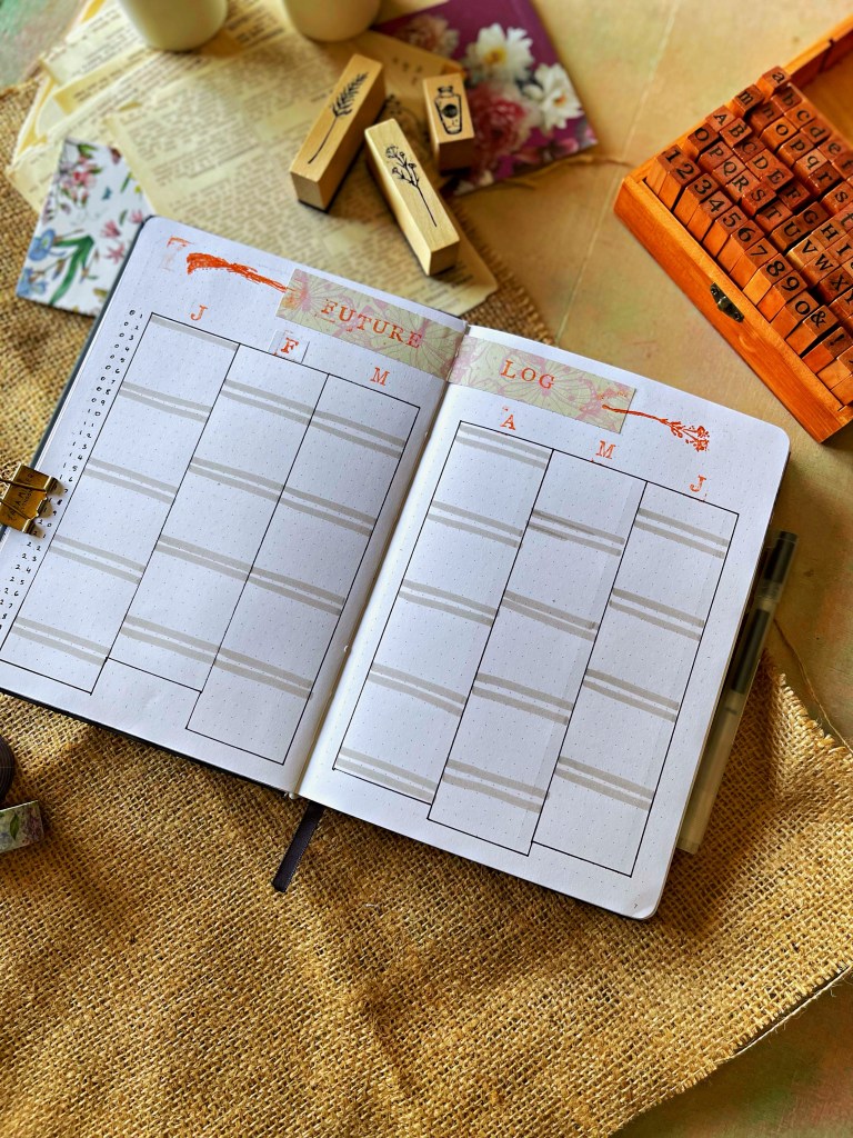 - Future Log: The future log spread is a vital part of the bullet journal system and allows you to log in future events for months which may not be setup ahead. It’s a look ahead at your life, in one spread.